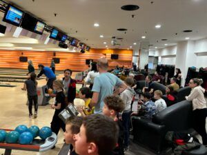Pred nadaljevanjem sezone 2024/2025, ki se preveša v spomladanski del, so se mladi članice in člani HK Moravske Toplice zbrali na bowlingu v Centru Maximus, kjer so, namesto rednega treninga, preizkusili svoje spretnosti v podiranju kegljev. Prijetno druženje s trenerjema je spremljalo veliko smeha, dobre volje in navdušenja ob vsakem uspešnem ali ponesrečenem metu težke krogle 🙂